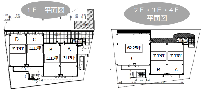 | 賃料(税別) | ■1階:28,000円/坪■2階~4階 15,000円/坪 |