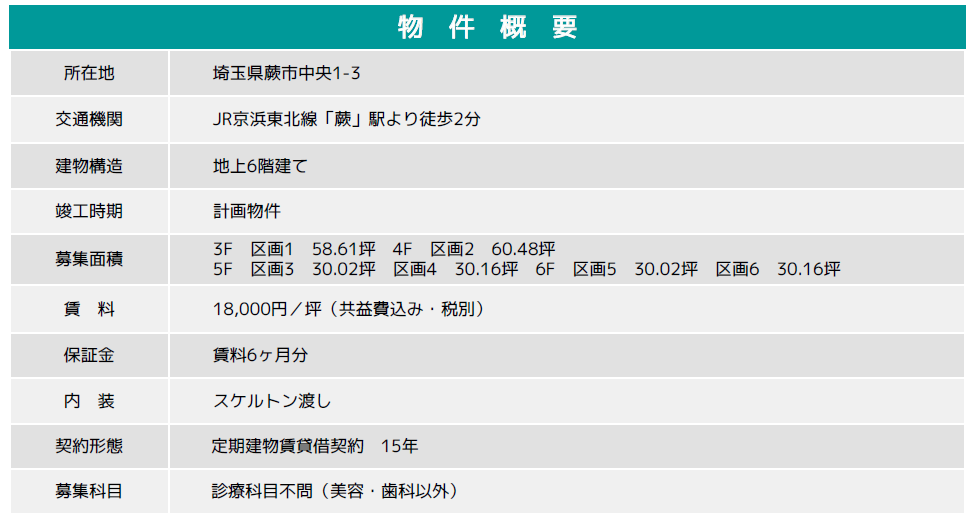 賃貸条件 ■ポイント■ ・最寄り駅より徒歩2分の駅チカ物件! ・2つの大きな通りの角地のため視認性良好! ・内装自由度の高い新築医療ビル計画!